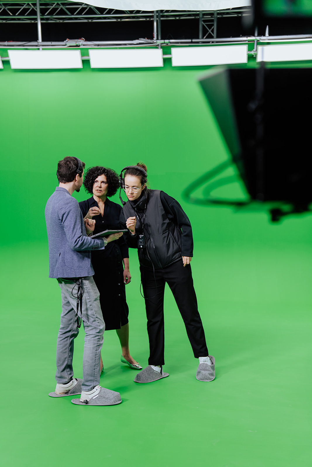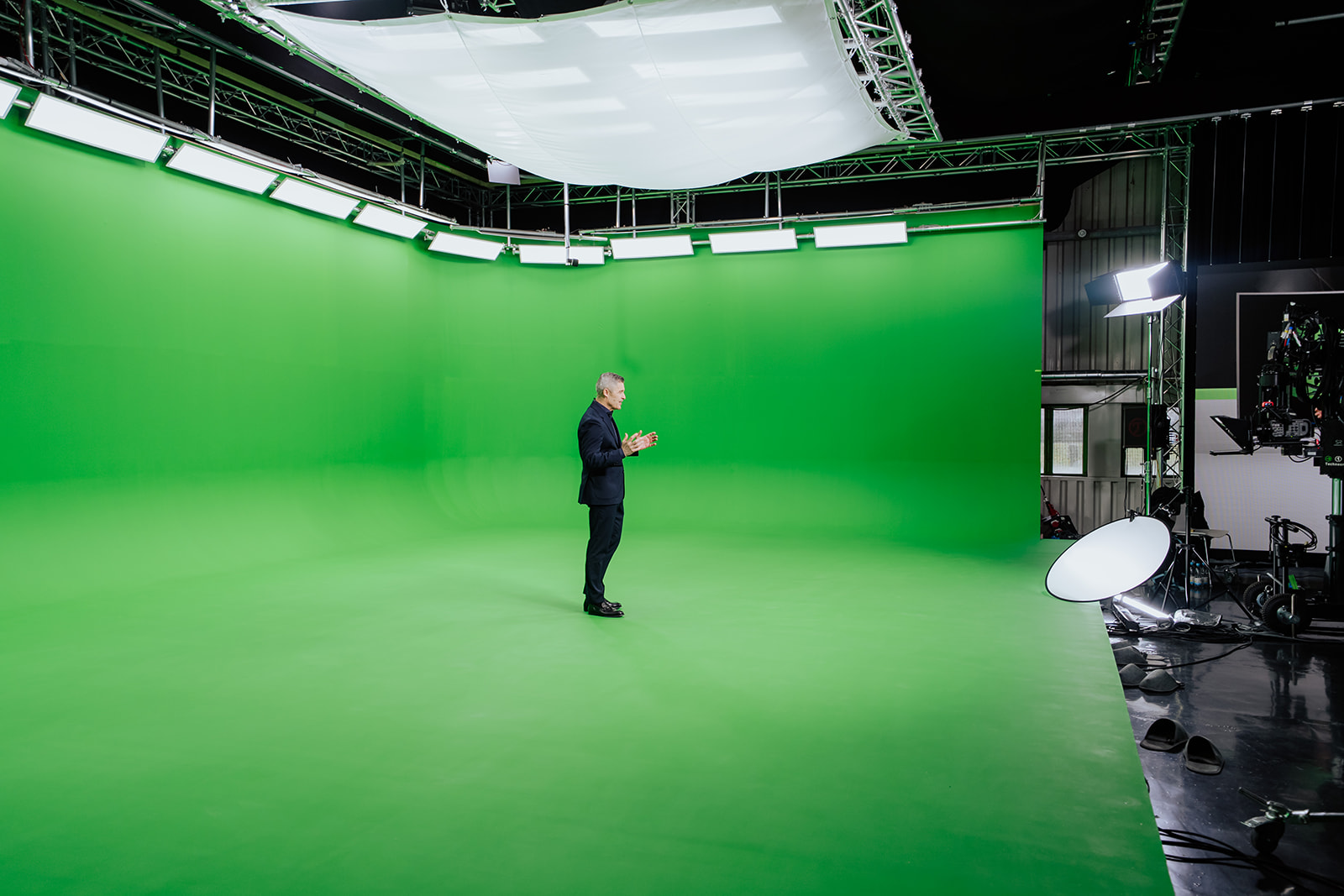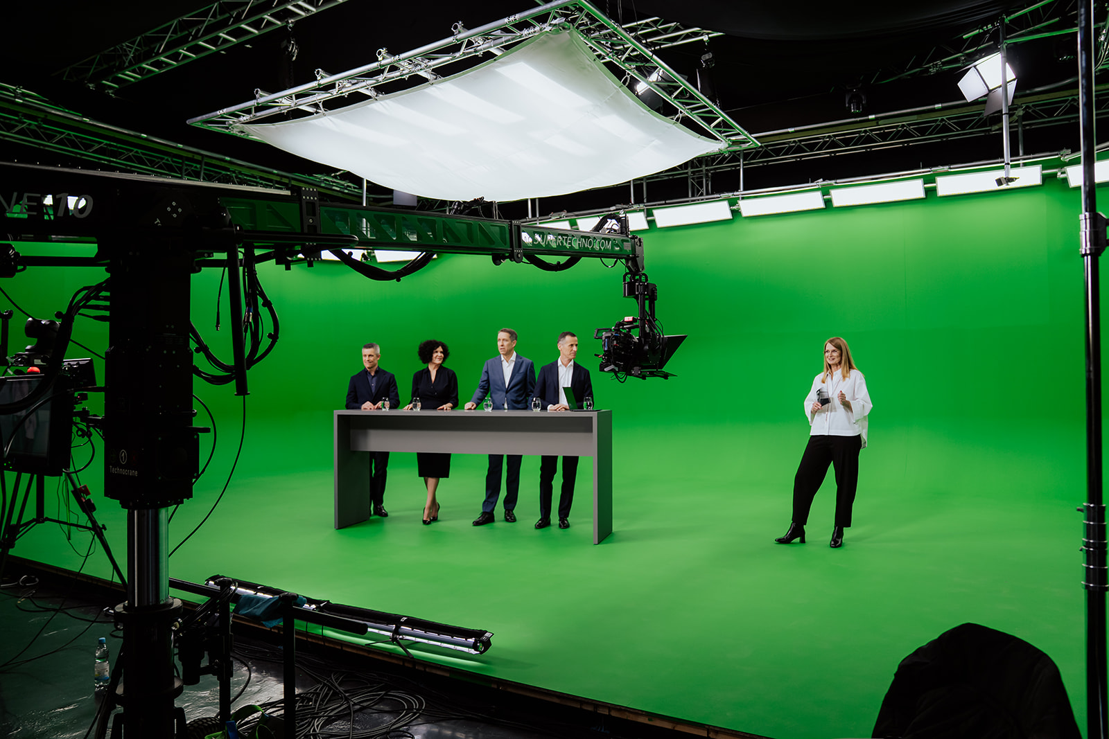 - CI‑konforme, schnell anpassbare virtuelle Sets – kein aufwendiger Kulissenbau